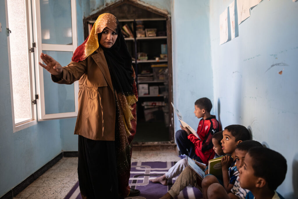 Umweltbildungsexpertin Najla arbeitet unermüdlich gegen die Not an. Wenn sie nicht gerade in der Bibliothek vorliest oder ihre eigenen Kinder umsorgt, steigt sie auf Podien in Algier oder reist nach Europa, um sahrauischen Frauen eine Stimme zu geben. Najla wuchs glücklich in den Lagern auf, studierte in den USA. In den globalen Norden wollte sie nie ziehen: «Mein Platz ist unter den Sahrauis. Hier werde ich gebraucht. Wegrennen ist keine Lösung.»